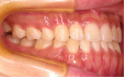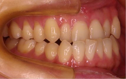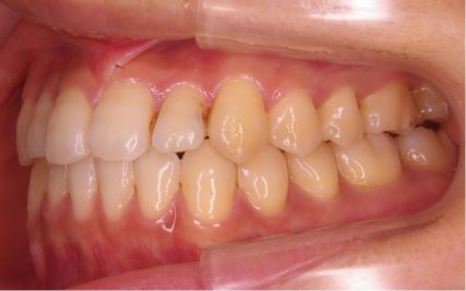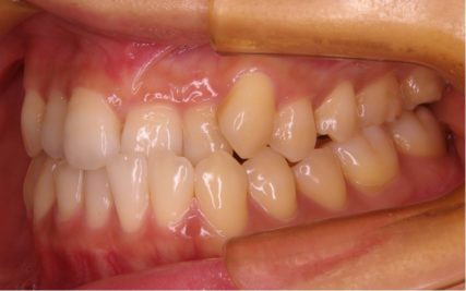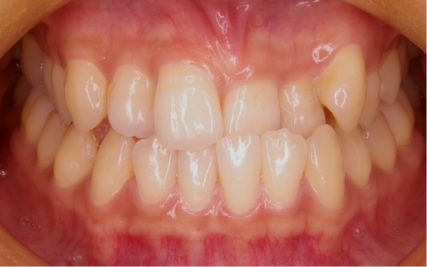 - 歯科矯正用アンカースクリューや取り外し装置の顎間ゴムを使用した事で非抜歯で受け口が改善された。