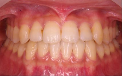 - 手術なしの治療のため下顎骨前方位に変化はないが、前歯のかみ合わせを正常被蓋にすることで受け口が改善された。