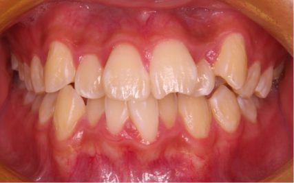 - 正中のズレを伴う叢生症例。