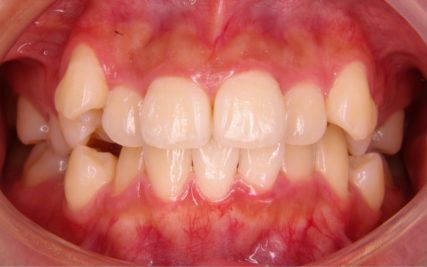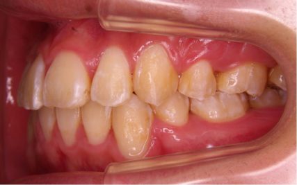 - 歯科矯正用アンカースクリューを用いて上下奥歯を圧下することにより開咬が解消され、正常咬合を獲得する事が出来た。