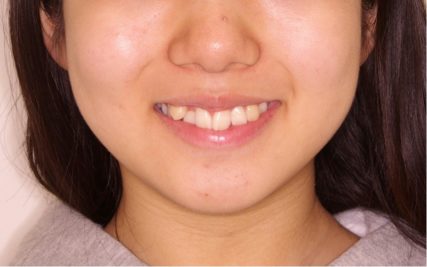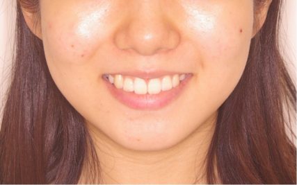 - 口元も閉じやすくなり、正常咬合を獲得する事が出来た。ガミースマイルも緩和され口唇の筋力トレーニングを継続中。