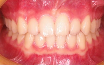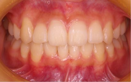 - 前歯部のでこぼこが解消され、正常咬合を獲得する事が出来た。低位犬歯の歯ぐきの高さも隣の歯と合った。