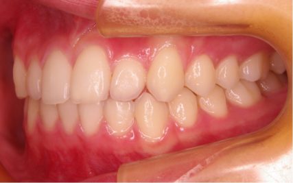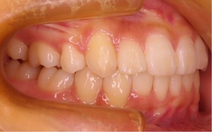 - 前歯部のでこぼこが解消され、正常咬合を獲得する事が出来た。八重歯の右上犬歯も歯肉退縮を起こさず配列された。