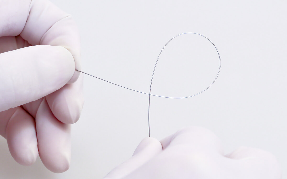 当院で使用するワイヤーは、超弾性の形状記憶合金です。非常に柔らかく、最適な弱い力を継続的に歯に伝えます。これにより、歯にあたえるダメージが最小限となり、痛みも少なく、かつ効率的に歯を動かすことができます。