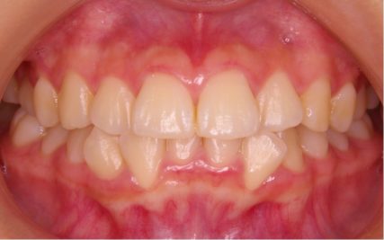 - 叢生を伴う上顎前突症例。口唇の突出も認められる。