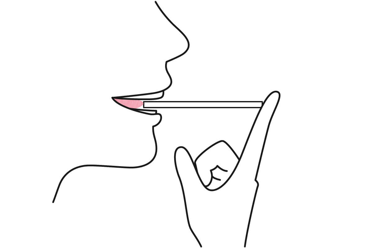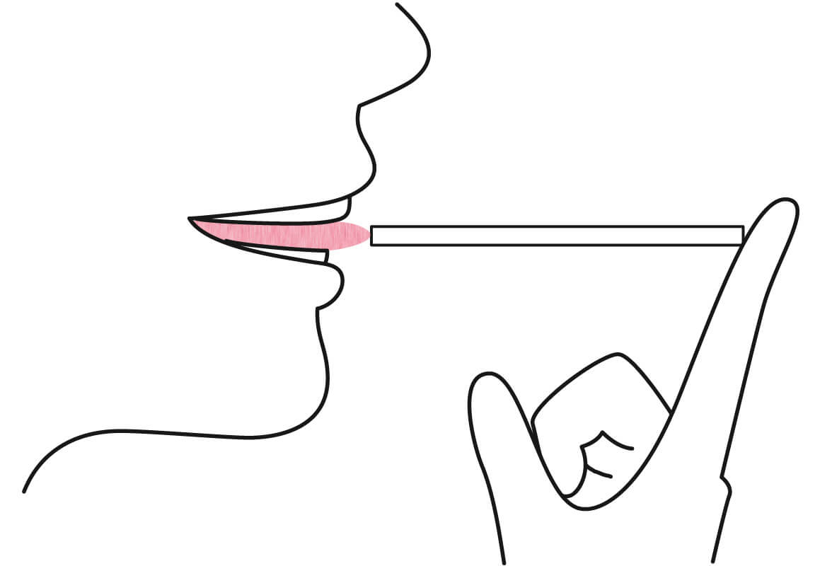 舌の先をストローにあてて、指で軽く支えます。この状態で唾液を飲み込むと…