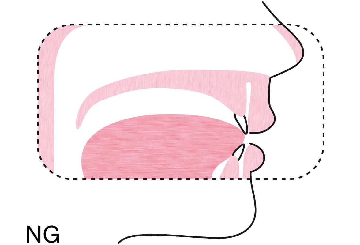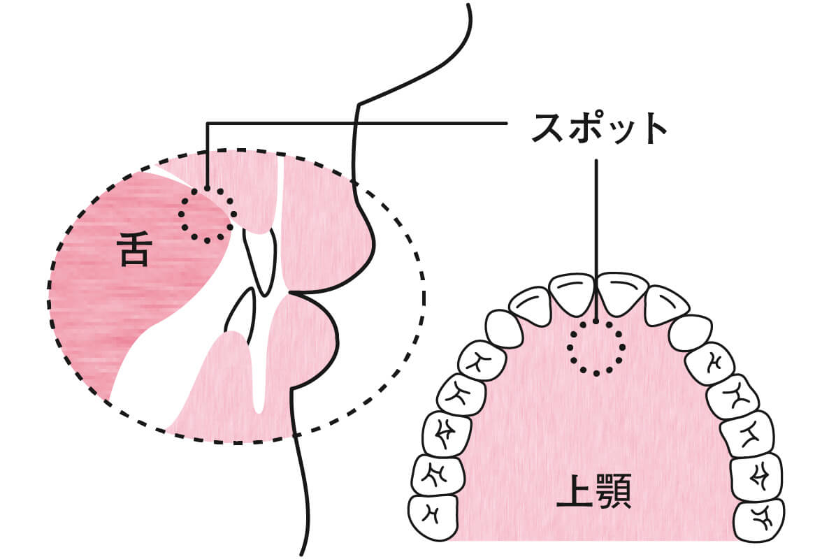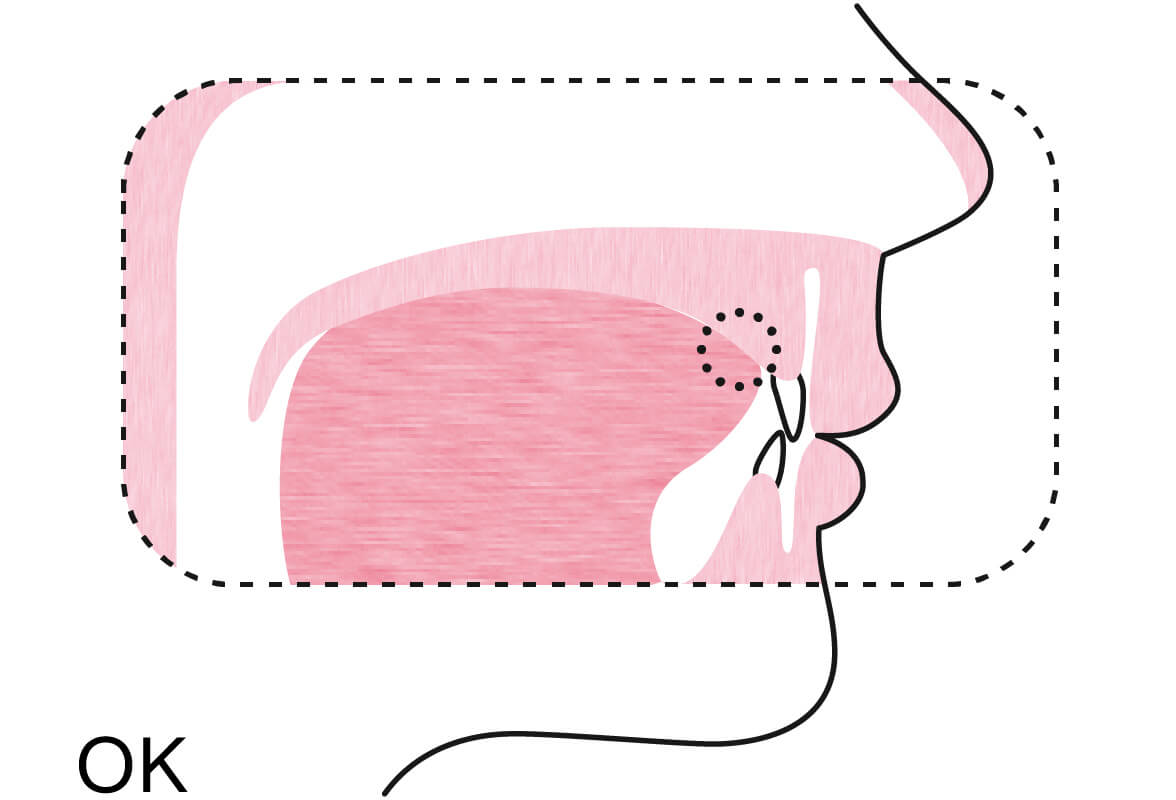 舌の先が上顎のスポットについたままの状態が正しい位置です。